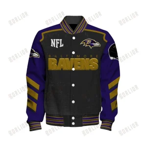Baltimore Ravens Button Down Baseball Varsity Bomber Jacket Version 7