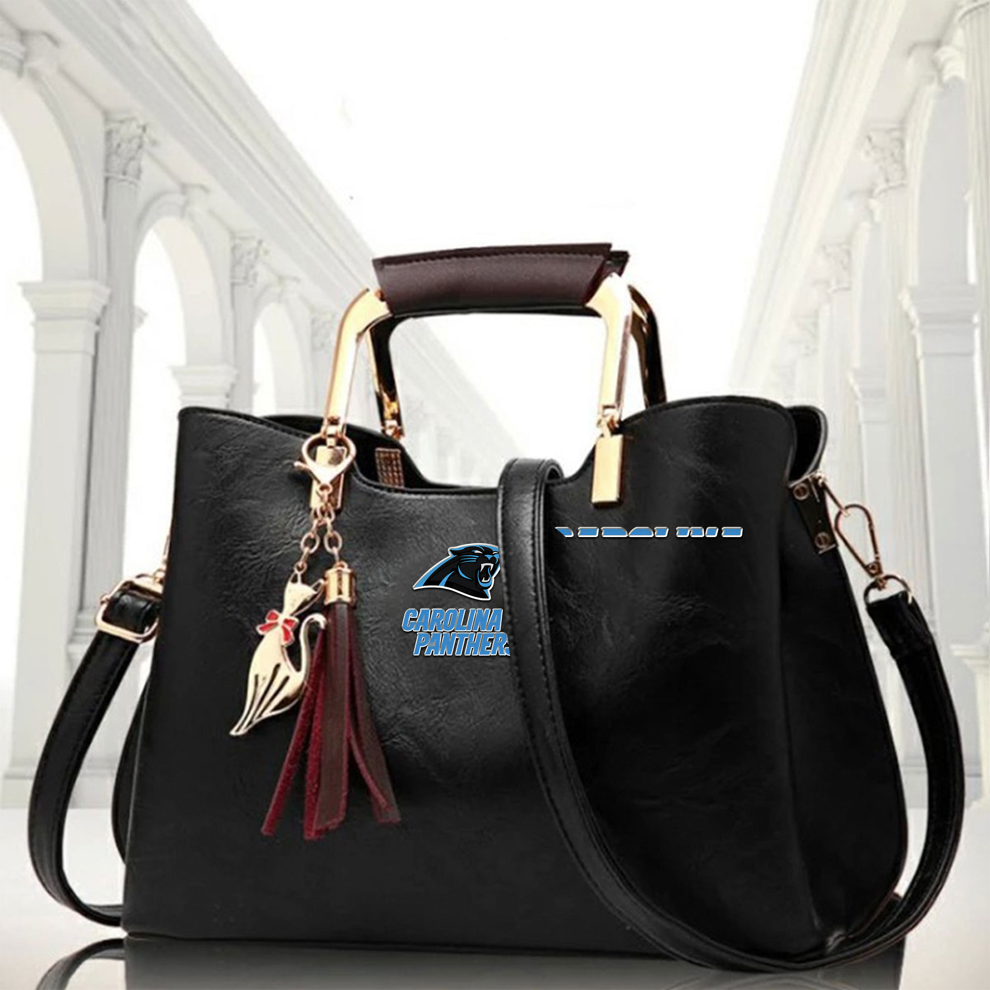 Hi there!! Are you looking at our Carolina Panthers handbags. These handbags are unique, made with love, and they are perfect accessories for your outfit. The Shining Carolina Panthers Emblem on the purse makes it a perfect item for any Carolina Panthers Lovers and Ladies.
