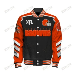 Cleveland Browns Button Down Baseball Varsity Bomber Jacket Version 7