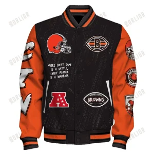 Hi there!! Are you looking at our Cleveland Browns Bomber Jacket. These bombers Jacket are unique, made with love, and they are perfect accessories for your outfit. The Cleveland Browns Emblem on the shoes makes it a perfect item for any Cleveland Browns Lovers.