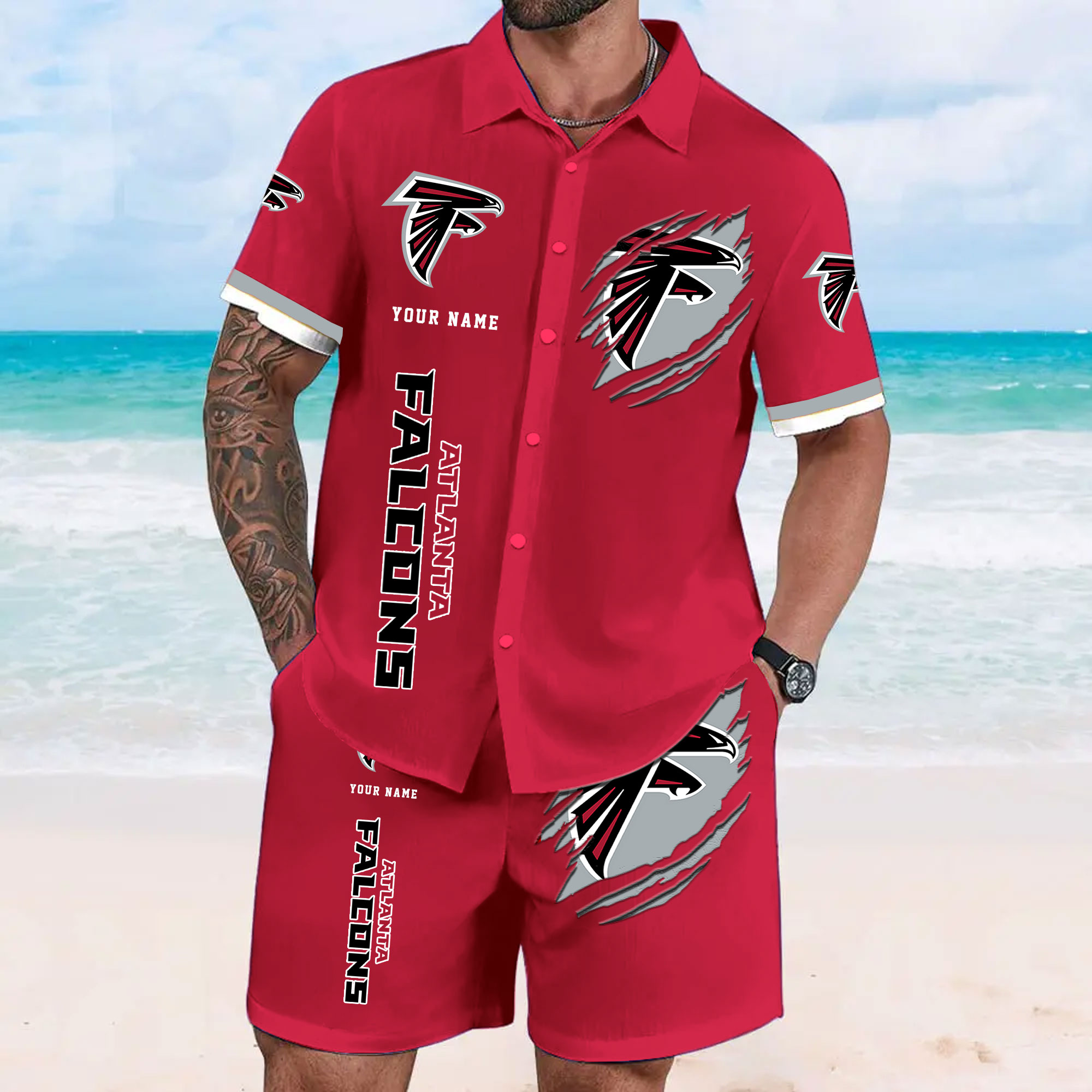 Custom Your Name With Atlanta Falcons Football Hawaiian Style Shirt and Shorts Set