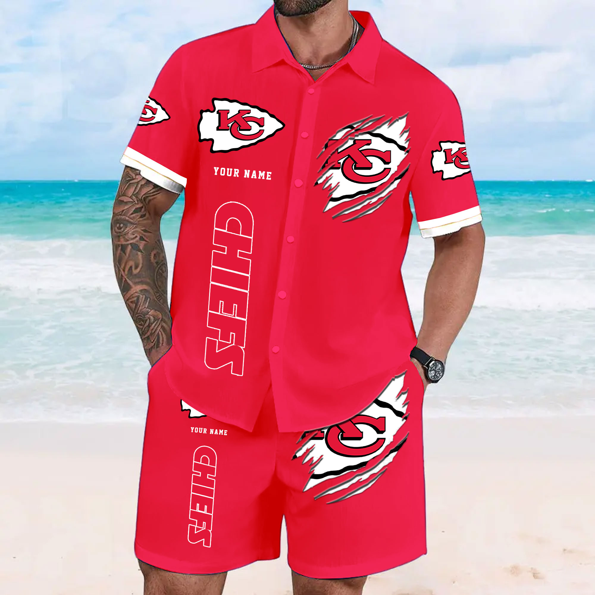 Custom Your Name With Kansas City Chiefs Football Hawaiian Style Shirt and Shorts Set