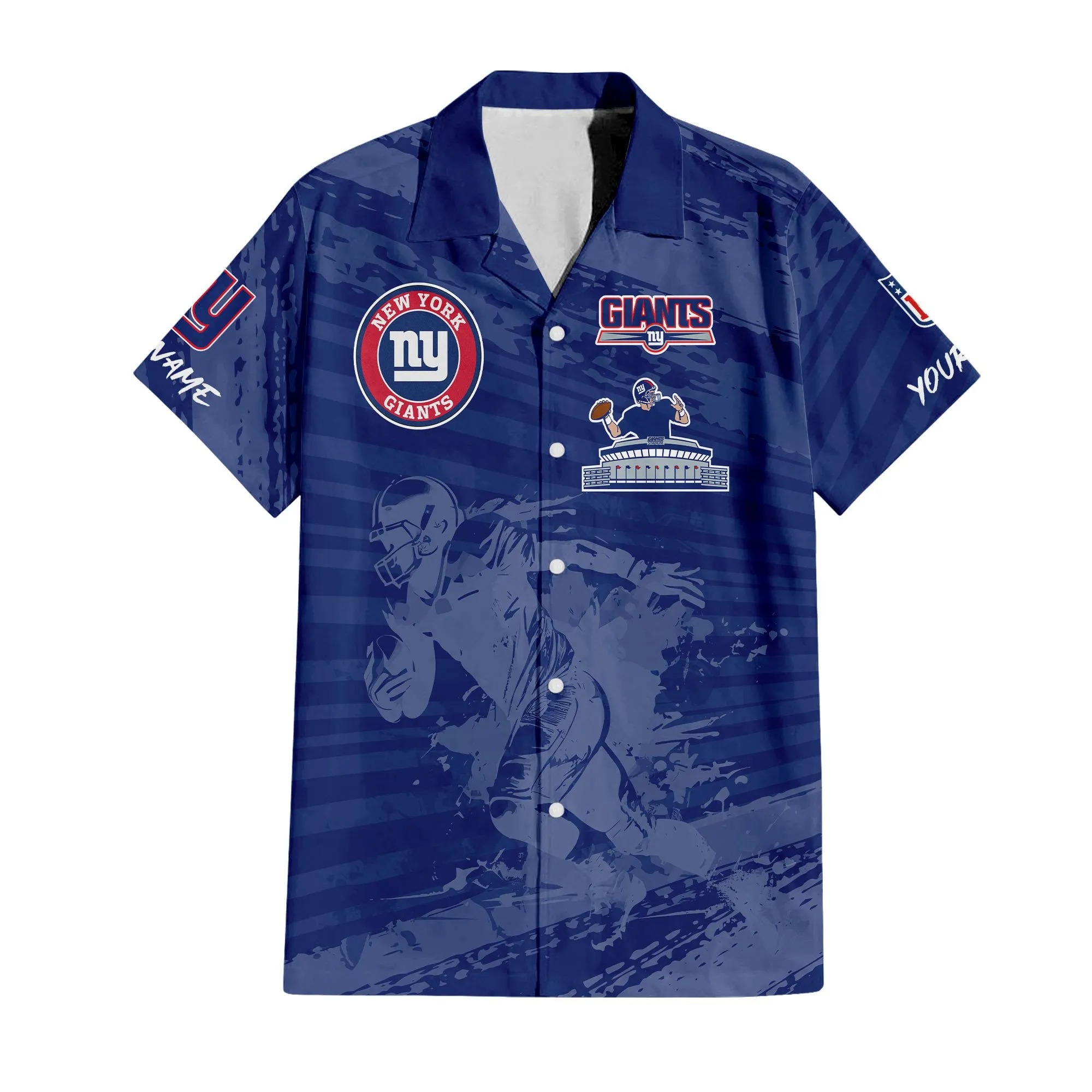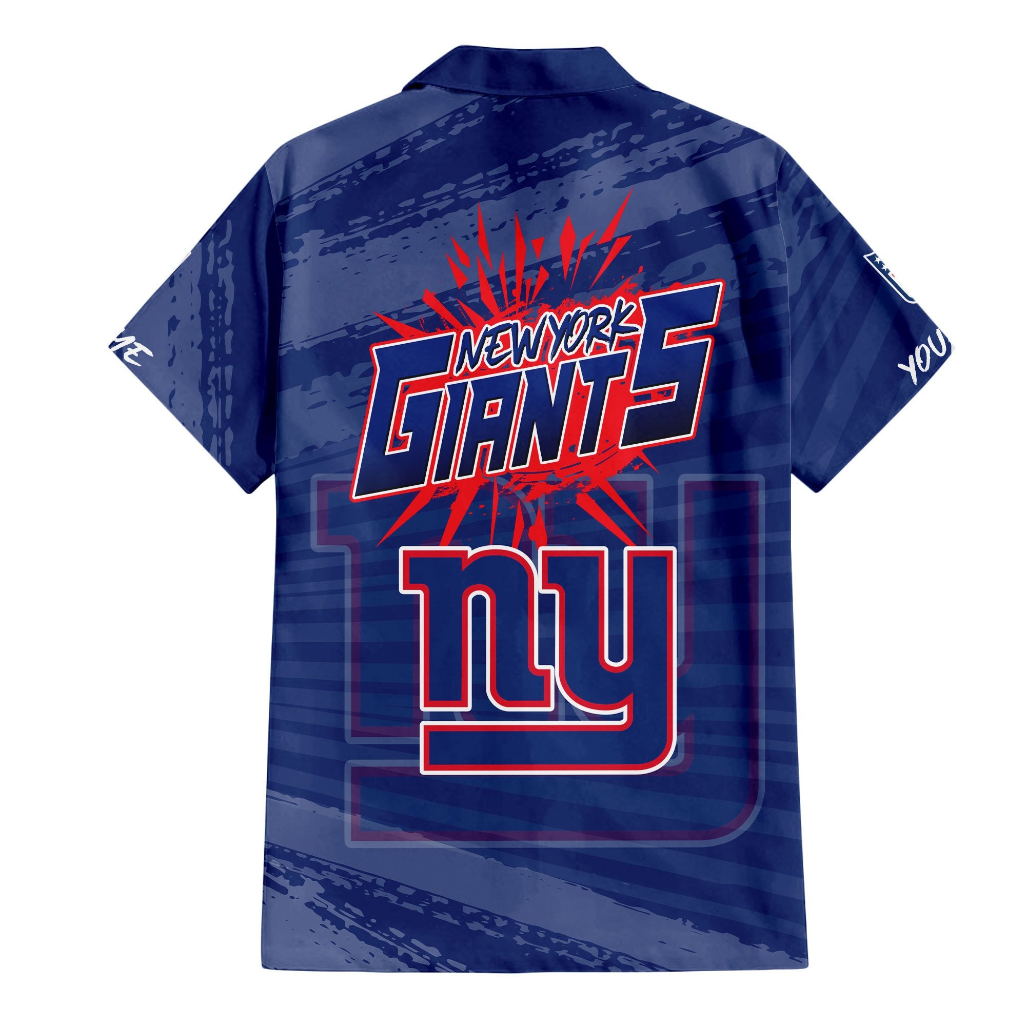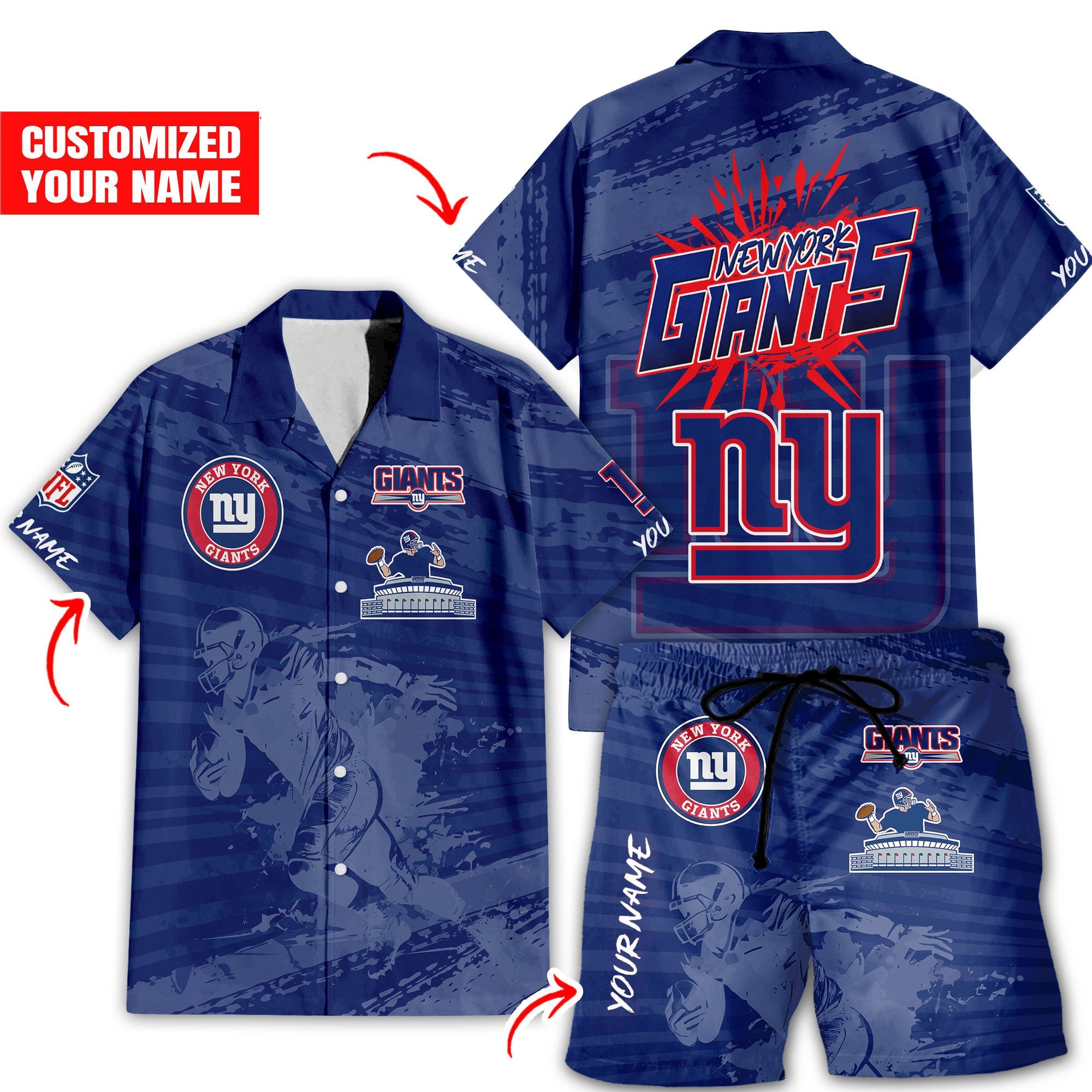 With our Made-to-Order service, you can personalize your Hawaiian Shirt and Shorts Set by adding your own name alongside the iconic New York Giants Football design, making it truly one-of-a-kind.