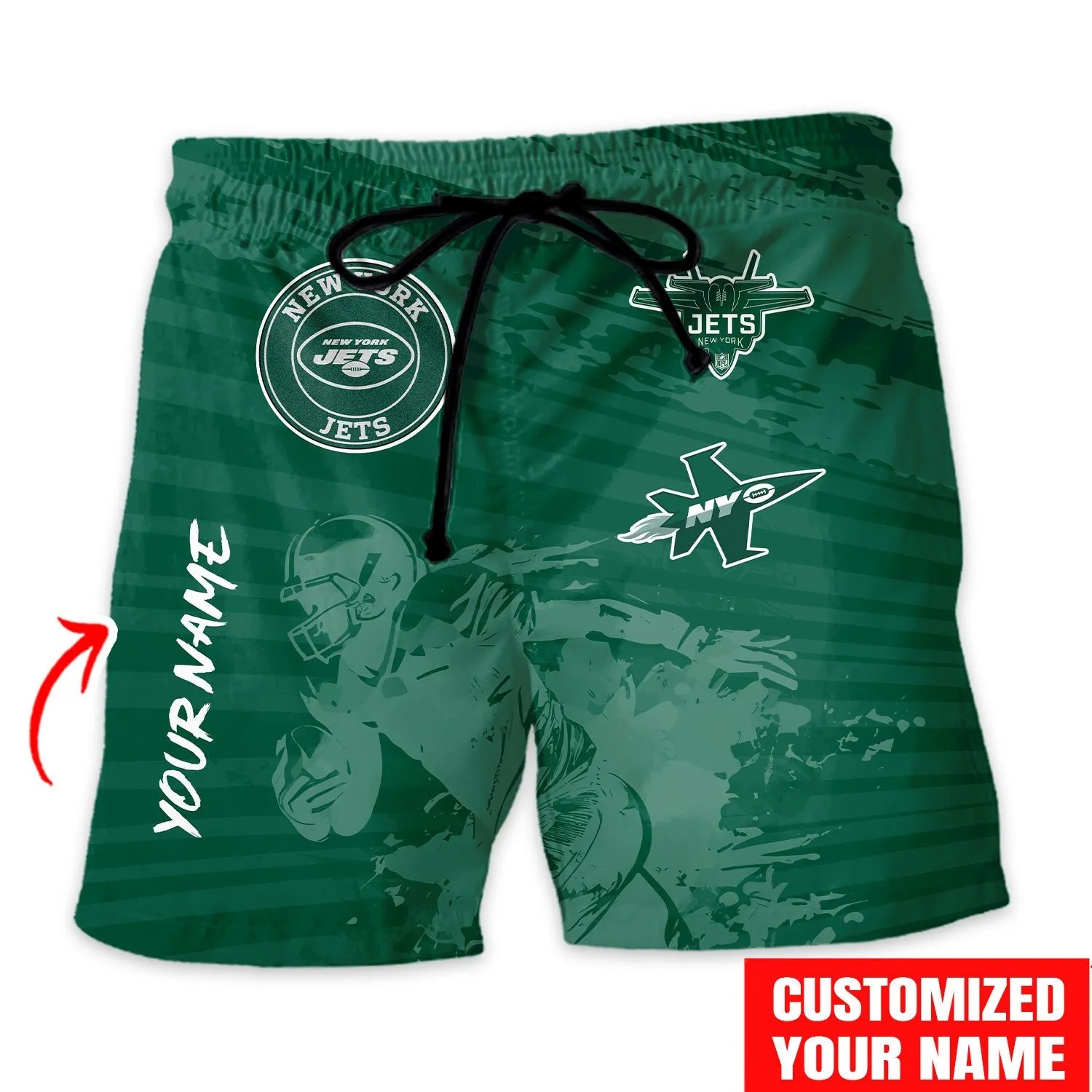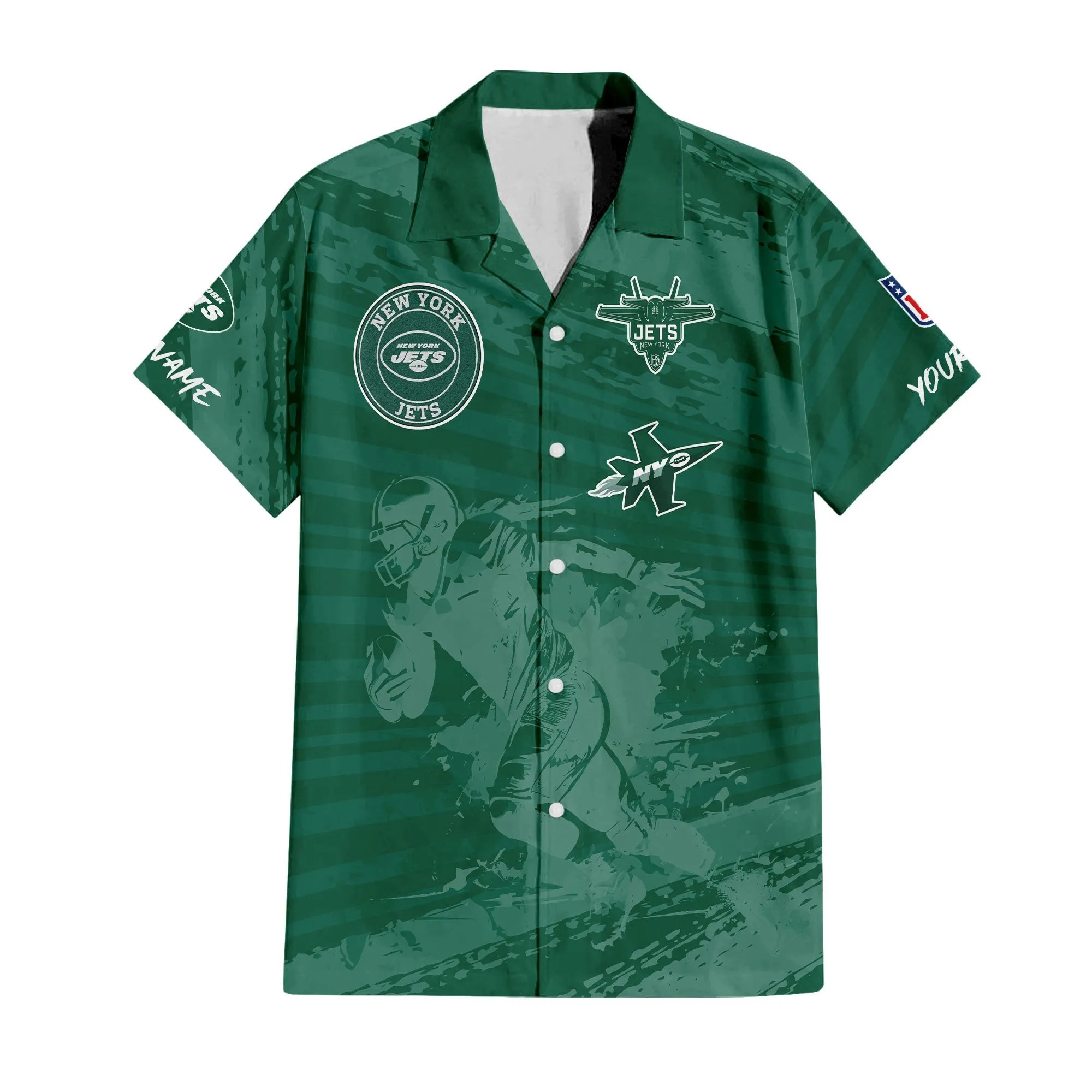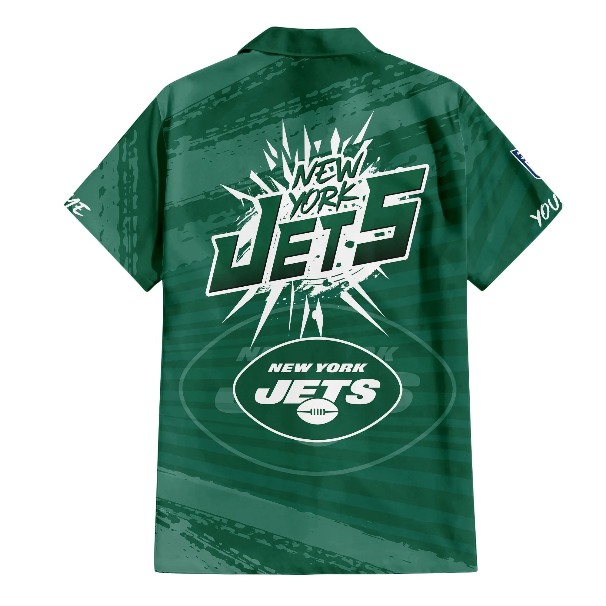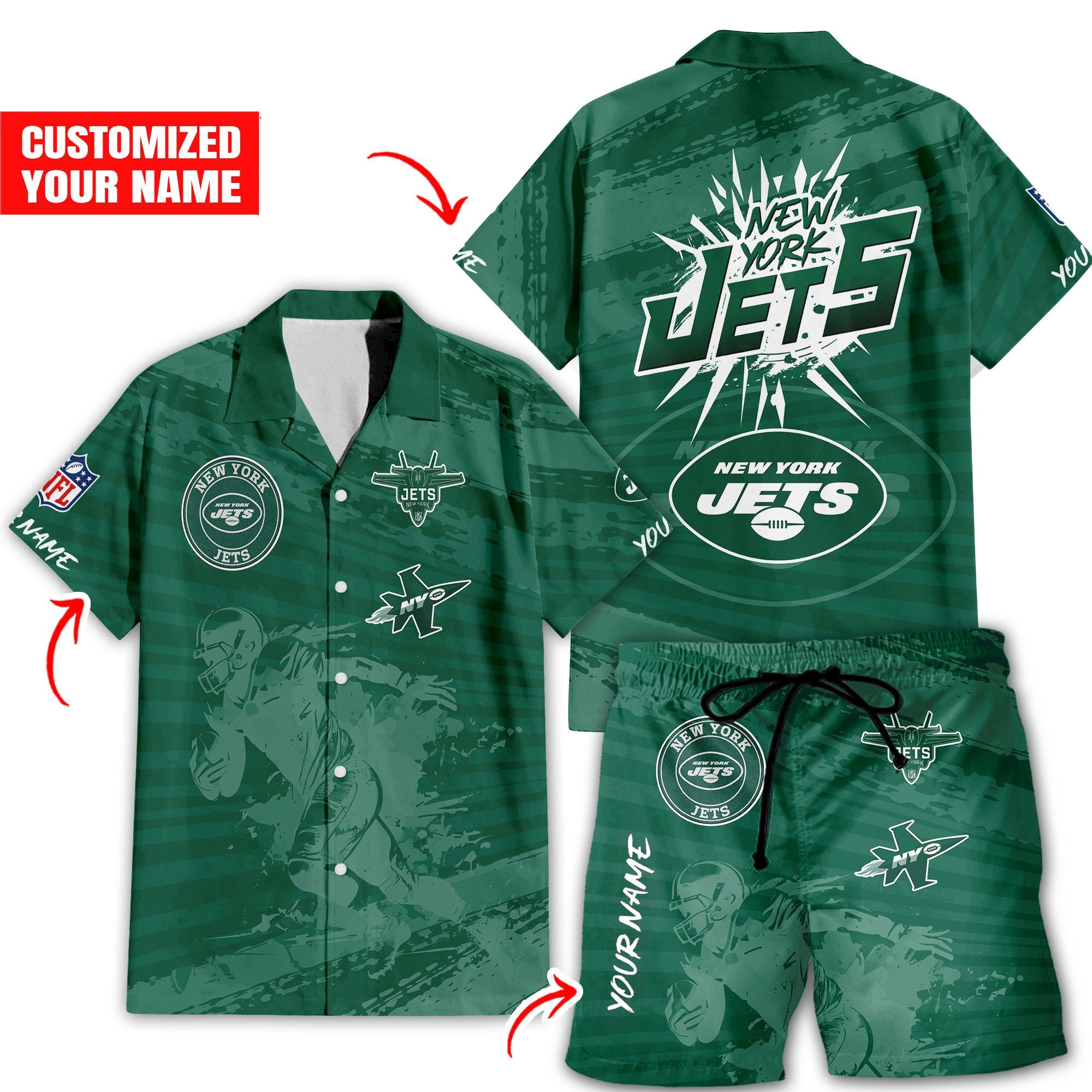 With our Made-to-Order service, you can personalize your Hawaiian Shirt and Shorts Set by adding your own name alongside the iconic New York Jets Football design, making it truly one-of-a-kind.