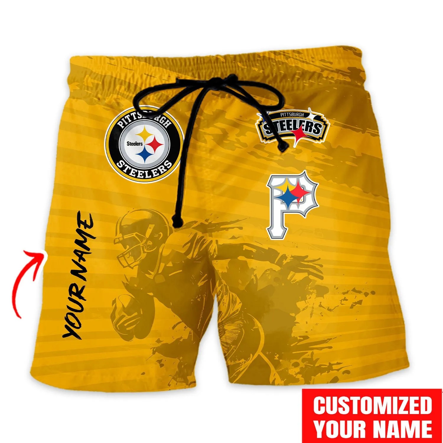 Custom Your Name With Pittsburgh Steelers Football Hawaiian Style Shirt and Shorts Set