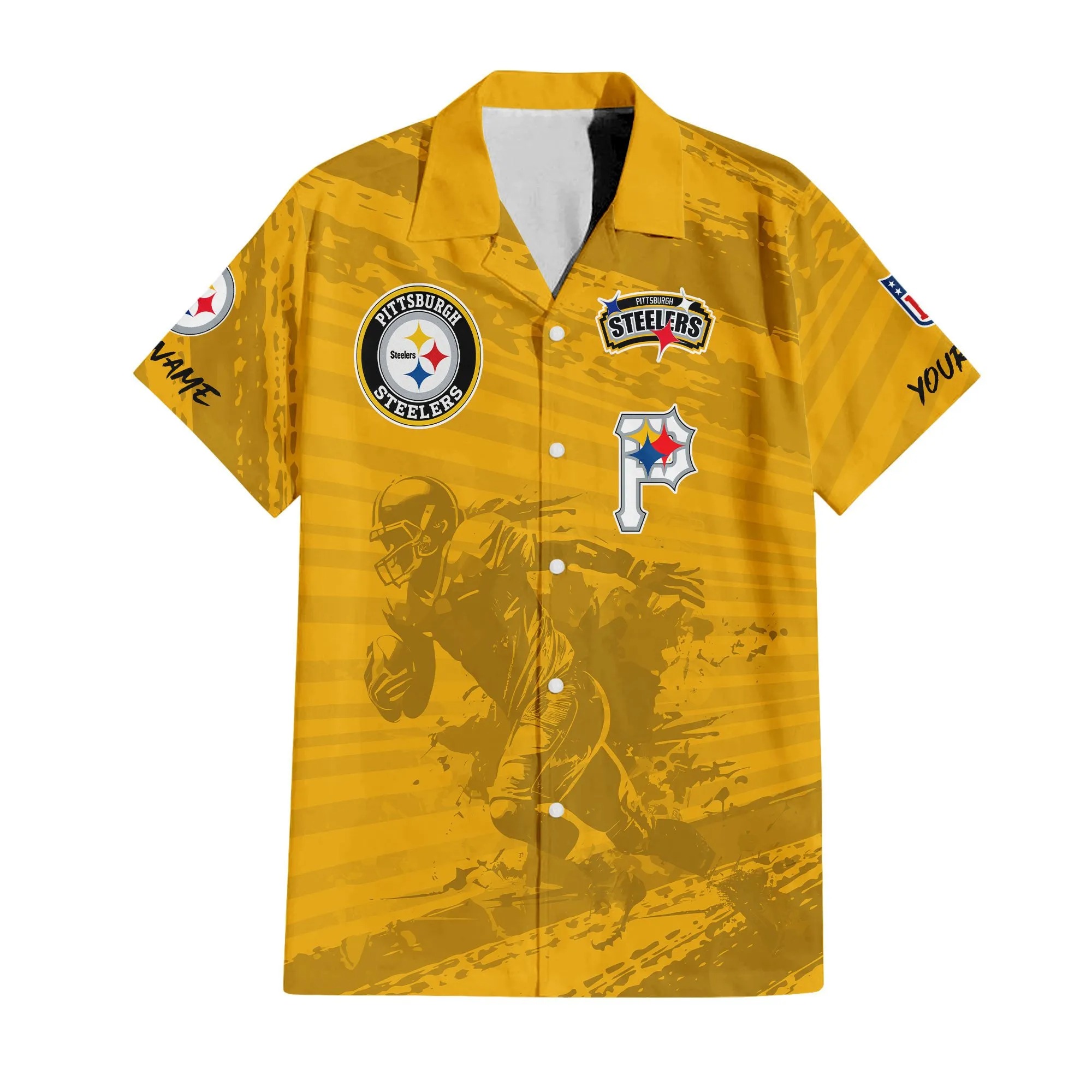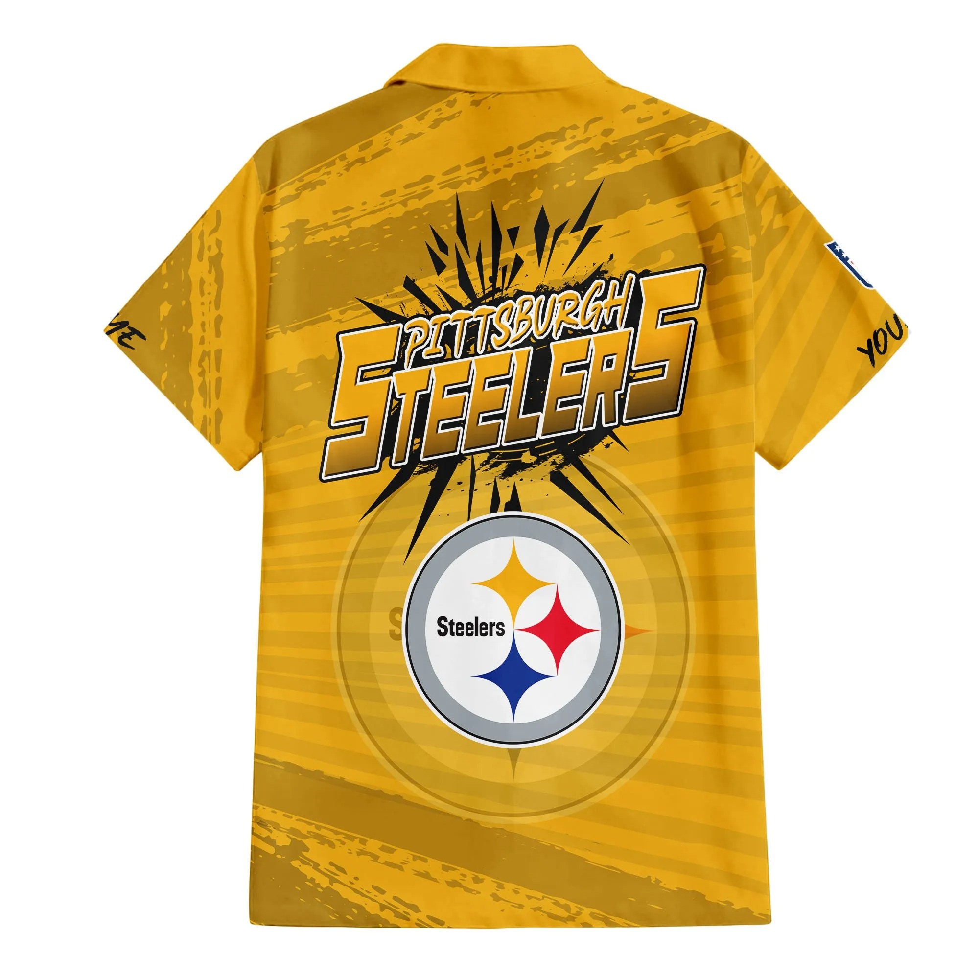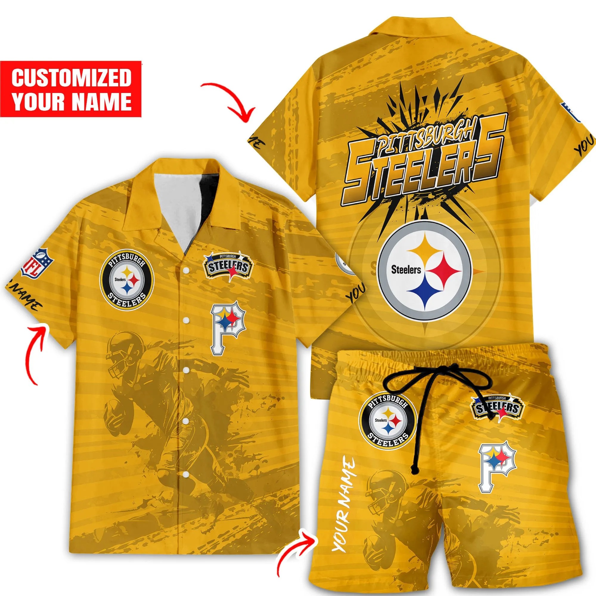 Custom Your Name With Pittsburgh Steelers Football Hawaiian Style Shirt and Shorts Set