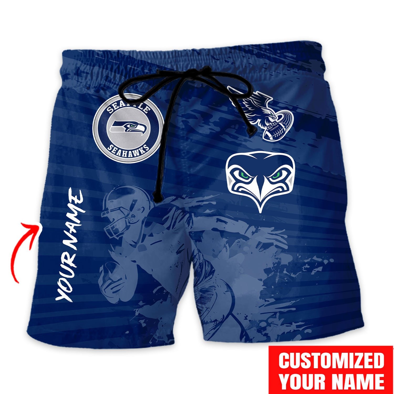 With our Made-to-Order service, you can personalize your Hawaiian Shirt and Shorts Set by adding your own name alongside the iconic Seattle Seahawks Football design, making it truly one-of-a-kind.