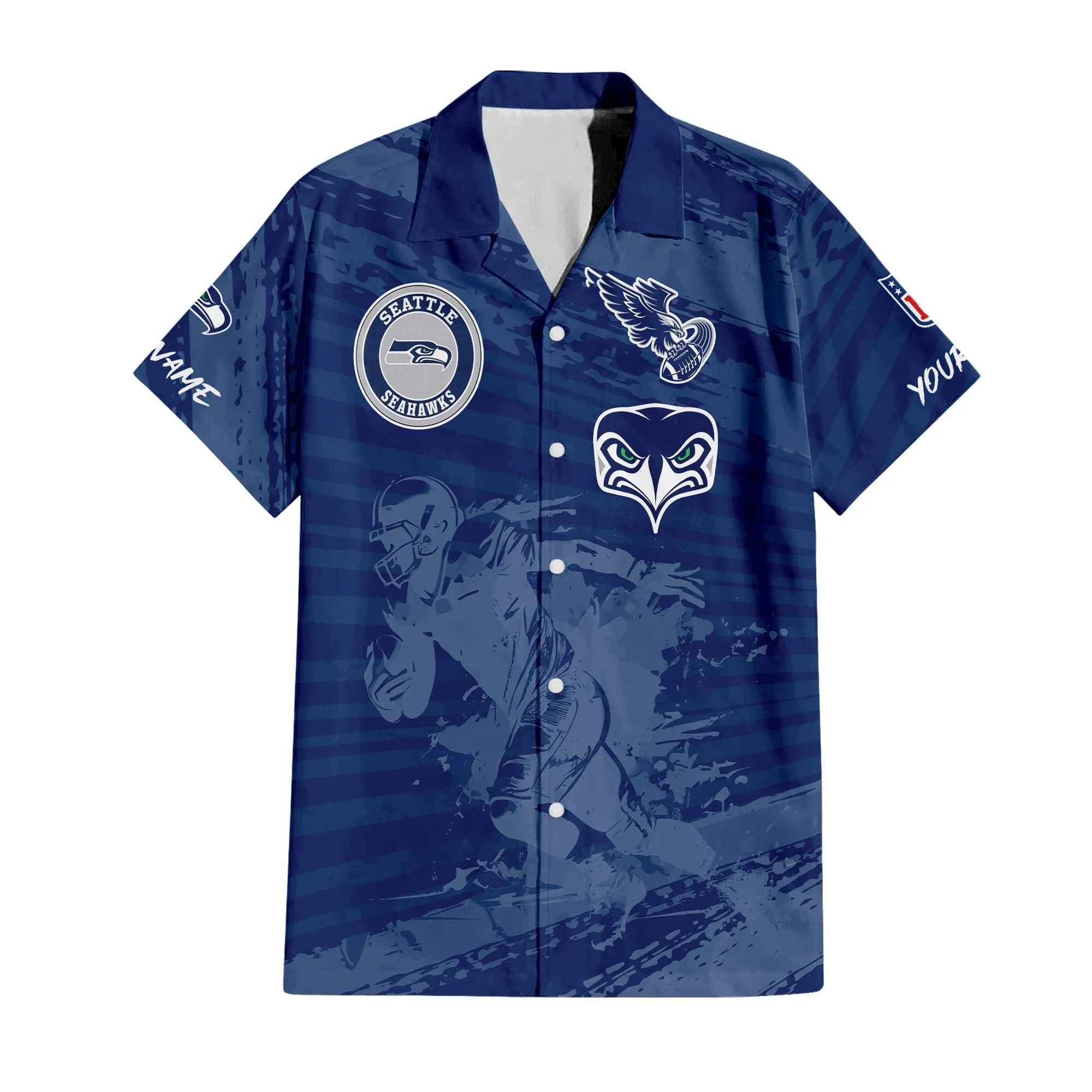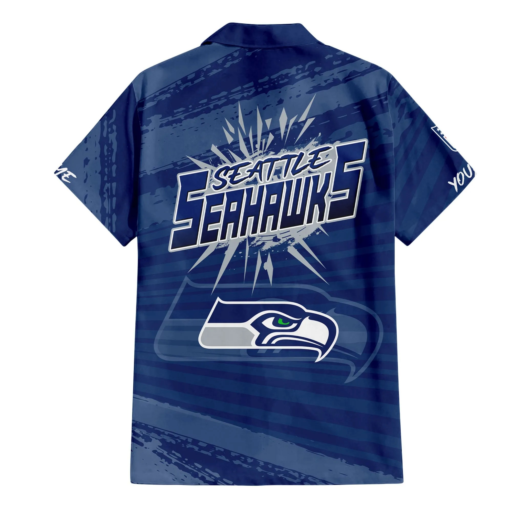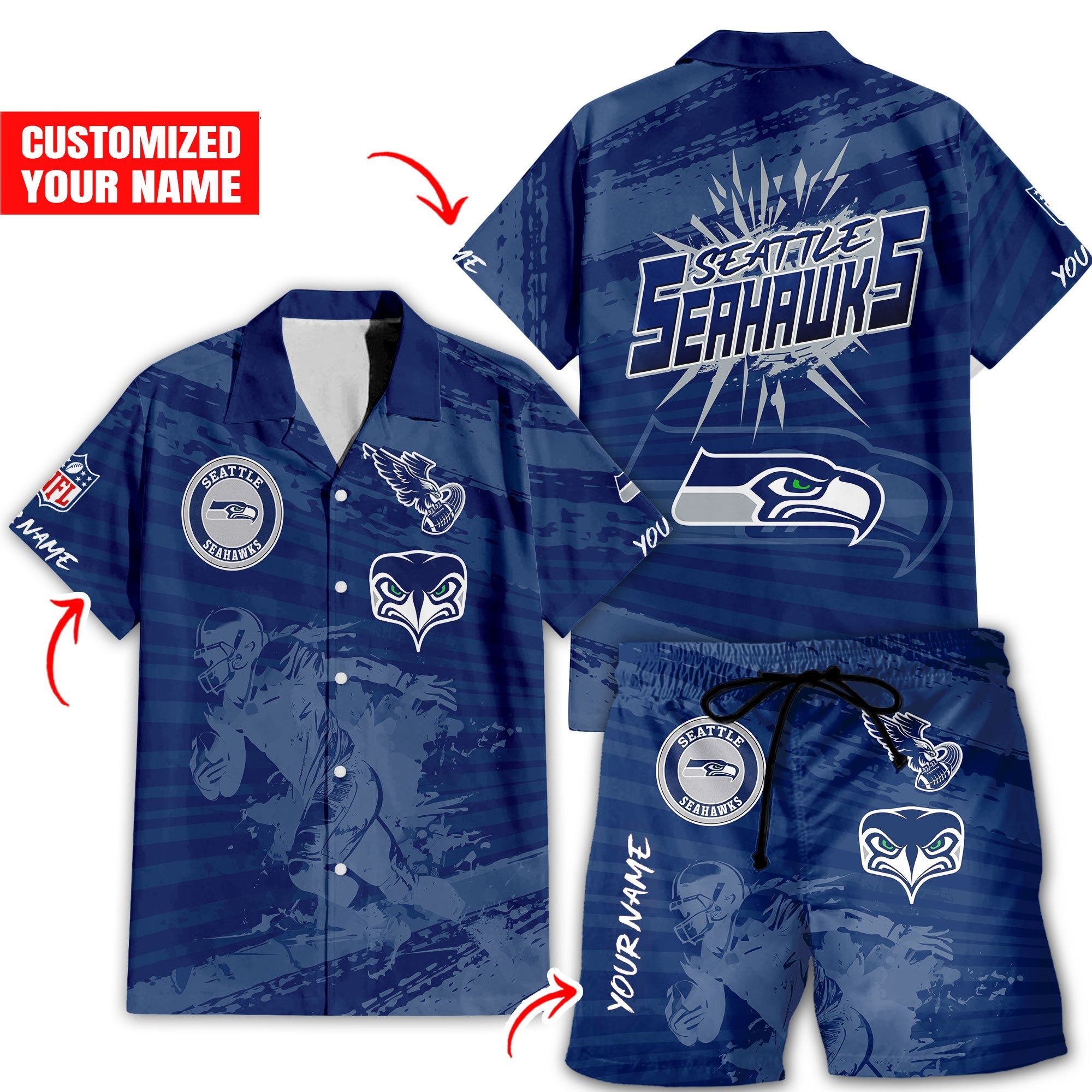 With our Made-to-Order service, you can personalize your Hawaiian Shirt and Shorts Set by adding your own name alongside the iconic Seattle Seahawks Football design, making it truly one-of-a-kind.