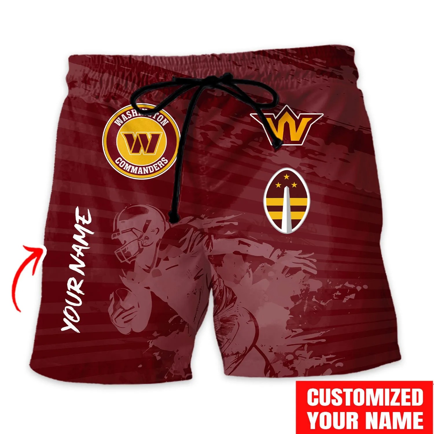 With our Made-to-Order service, you can personalize your Hawaiian Shirt and Shorts Set by adding your own name alongside the iconic Washington Commanders Football design, making it truly one-of-a-kind.