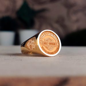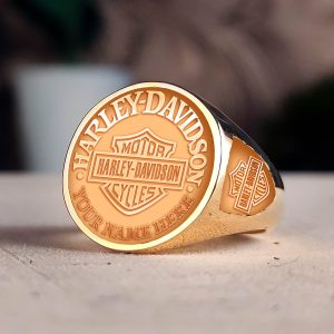 Harley Davidsion Ring, which is indispensable accessories of daily life today, adorn our fingers with many model options. With its confident design and stance in your hand, it will be your indispensable piece and will turn into a personal touch that’s perfect for any look. Our Bold Name Ring is crafted with a thick yet light-weight design, perfect to add to your daily rotation. The Harley Davidsion Emblem on the ring makes it a perfect item for any Harley Davidsion Lovers!