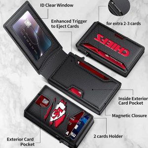 Customize Your Name With Kansas City Chiefs Blocking Pop Up Card Holder, Fashion Card Case Wallet