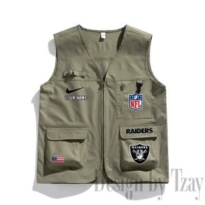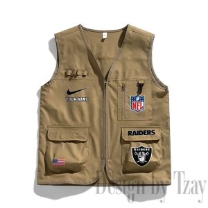 Customize Your Name With Las Vegas Raiders – Outdoor Camping Jacket Vest Multi-Pocket Mountain Series