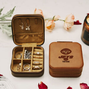 Keep your precious jewelry safe and organized with our personalized New York Jets jewelry boxes. These travel cases are the perfect size to store your favorite pieces, whether you’re on the go or just need a place to keep them tidy at home. The New York Jets Emblem on the box makes it a perfect item for any New York Jets Lovers!