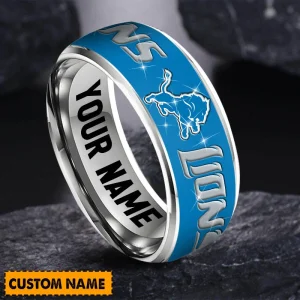 Detroit Lions Personalized Silver Tungsten Ring For NFL Fan
