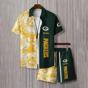With the launch of the exclusive Made-to-Order service, you can make your Hawaiian Shirt And Short unique by not only having your special Green Bay Packers Emblem printed on the Hawaiian Shirt And Short
