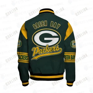 Green Bay Packers Button Down Baseball Varsity Bomber Jacket Version 8