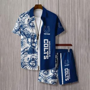 Indianapolis Colts Combo Hawaiian Shirt And Short Pants Toile de Jouy Pattern Custom Name Gift For Fan