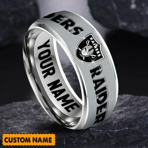 Las Vegas Raiders Personalized Silver Tungsten Ring For NFL Fan