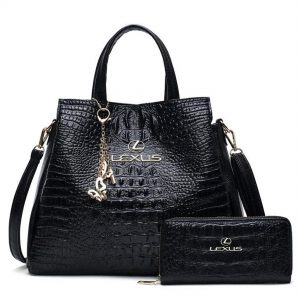 LEXUS Crocodile Leather Handbag With Free Matching Wallet
