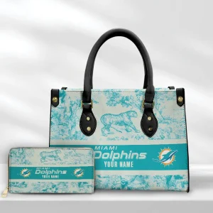 Miami Dolphins American Football Combo Handbag And Clutch Purse Wallet Custom Name Gift For Fan