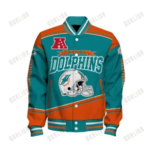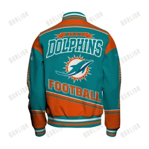Hi there!! Are you looking at our Miami Dolphins Bomber Jacket. These bombers Jacket are unique, made with love, and they are perfect accessories for your outfit. The Miami Dolphins Emblem on the shoes makes it a perfect item for any Miami Dolphins Lovers.
