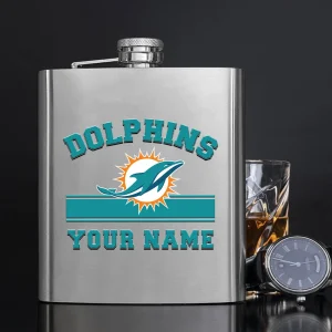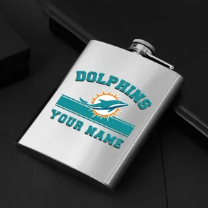 Miami Dolphins – NFL All Team Men Stainless Steel Hip Flask Custom Any Name Gift For Fans