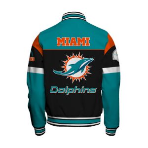 Hi there!! Are you looking at our Miami Dolphins Bomber Jacket. These bombers Jacket are unique, made with love, and they are perfect accessories for your outfit. The Miami Dolphins Emblem on the shoes makes it a perfect item for any Miami Dolphins Lovers.