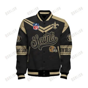 New Orleans Saints Button Down Baseball Varsity Bomber Jacket Version 8