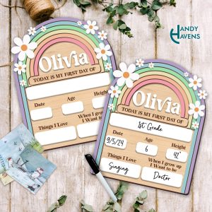 5 reviews for Personalized First Day School Sign, Back to School Sign, Custom Kids Daisy School Board Sign, Custom First Day School Sign