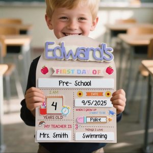 Personalized First Day School Sign – Reusable Back to School Board for Kids
