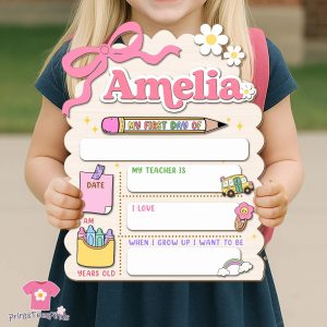 Make your child’s first day back to school truly memorable with this Personalized First Day School Sign! Thoughtfully crafted by PrintsTeesFinds, this adorable sign is perfect for capturing those milestone moments—from preschool to kindergarten and beyond.
