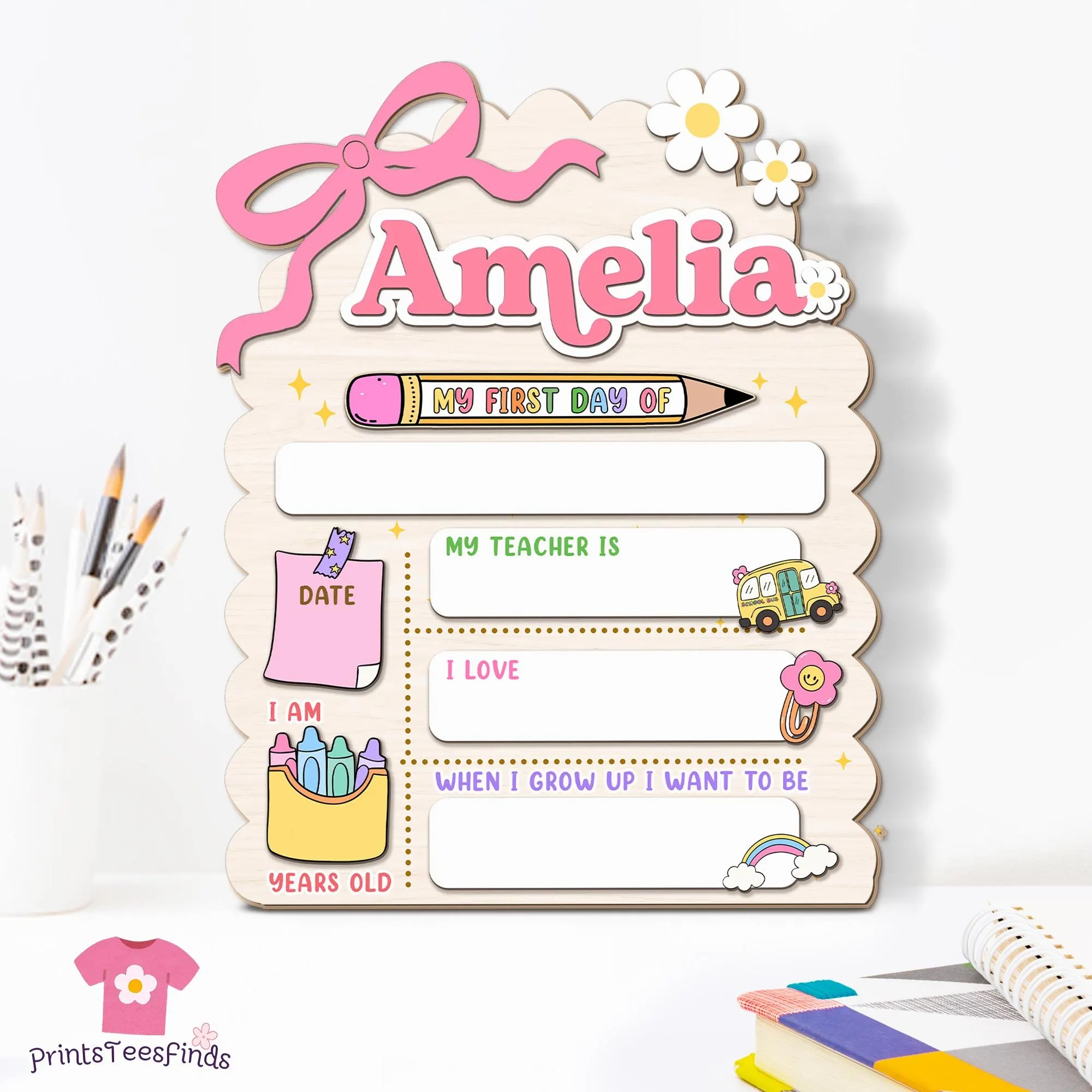 Personalized First Day School Sign – Reusable Back to School Board for Kids