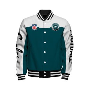 Hi there!! Are you looking at our Philadelphia Eagles Bomber Jacket. These bombers Jacket are unique, made with love, and they are perfect accessories for your outfit. The Philadelphia Eagles Emblem on the shoes makes it a perfect item for any Philadelphia Eagles Lovers.