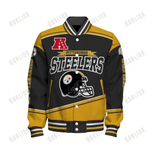 Hi there!! Are you looking at our Pittsburgh Steelers Bomber Jacket. These bombers Jacket are unique, made with love, and they are perfect accessories for your outfit. The Pittsburgh Steelers Emblem on the shoes makes it a perfect item for any Pittsburgh Steelers Lovers.