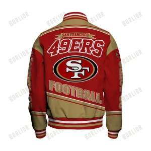 Hi there!! Are you looking at our San Francisco 49ers Bomber Jacket. These bombers Jacket are unique, made with love, and they are perfect accessories for your outfit. The San Francisco 49ers Emblem on the shoes makes it a perfect item for any San Francisco 49ers Lovers.