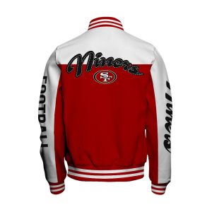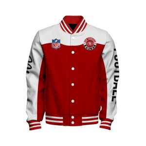 Hi there!! Are you looking at our San Francisco 49ers Bomber Jacket. These bombers Jacket are unique, made with love, and they are perfect accessories for your outfit. The San Francisco 49ers Emblem on the shoes makes it a perfect item for any San Francisco 49ers Lovers.