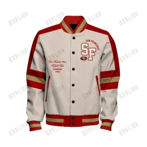 Hi there!! Are you looking at our Chicago Bears Bomber Jacket. These bombers Jacket are unique, made with love, and they are perfect accessories for your outfit. The San Francisco 49ers Emblem on the shoes makes it a perfect item for any San Francisco 49ers Lovers.