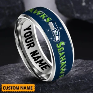 Seattle Seahawks Personalized Silver Tungsten Ring For NFL Fan